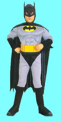 ![]() Batman Deluxe $38.99 Includes: Jumpsuit with muscled chest & arms, belt, headpiece and cape. Sizes: 4-6 8-10 12-14 |